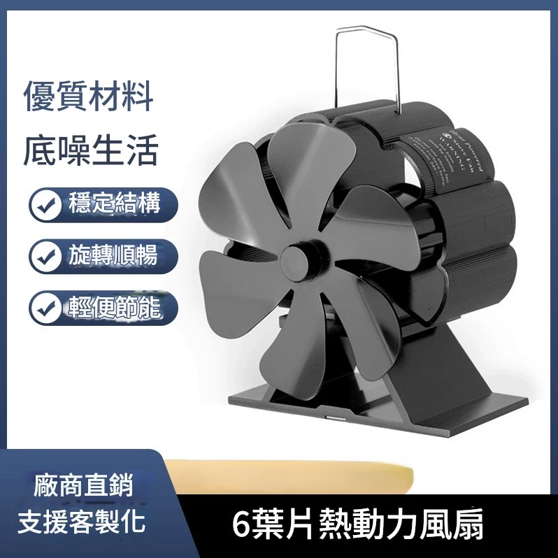 - 黑色6葉真火壁爐風扇 節約壁爐燃料 搖頭靜音熱動力風扇 NT$1299