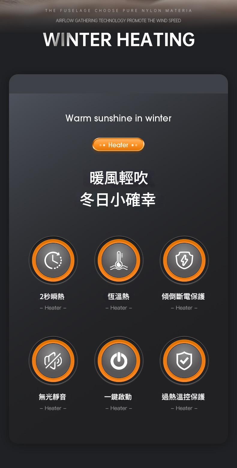 無光電熱暖器家用新款速熱暖風機辦公室小型桌上型熱風機