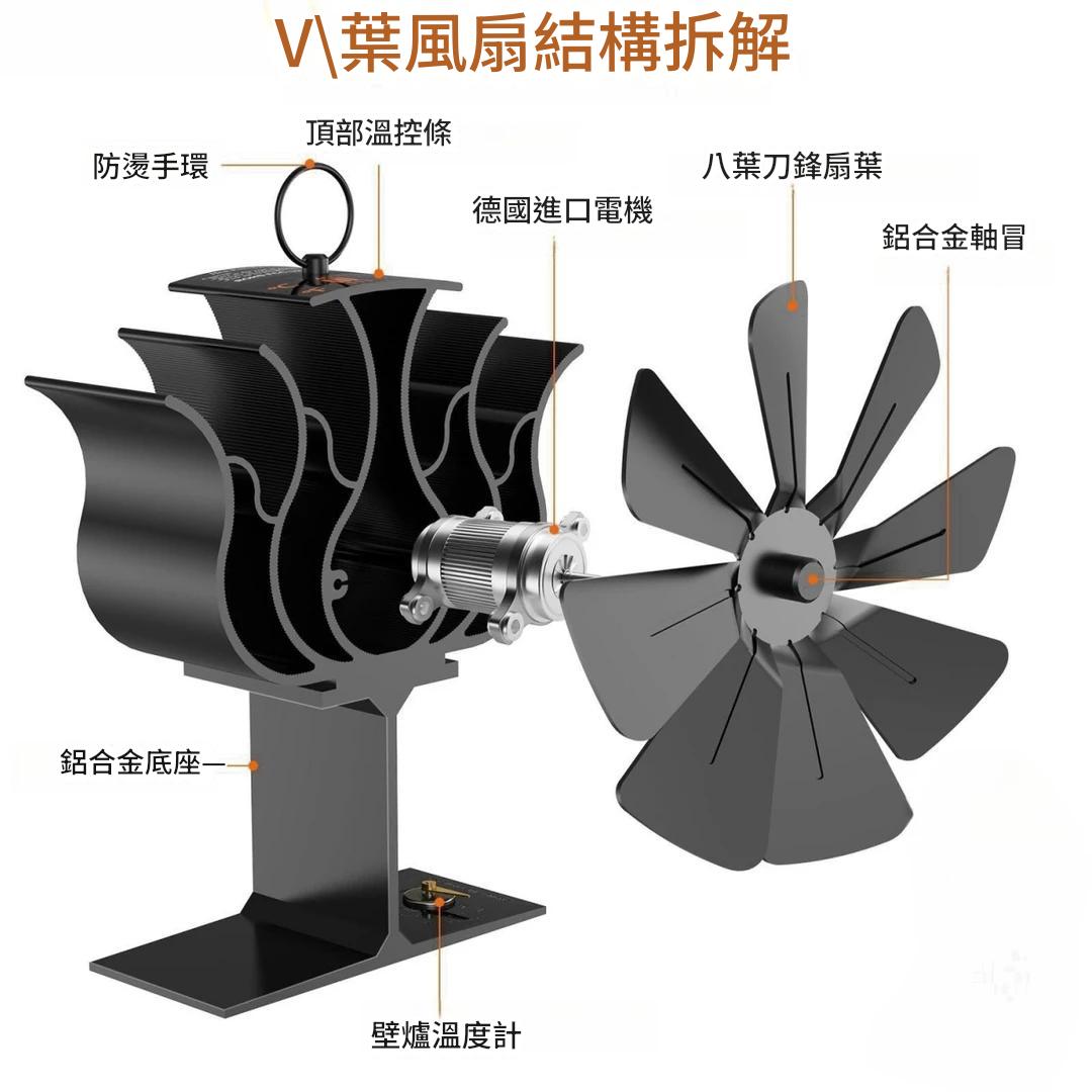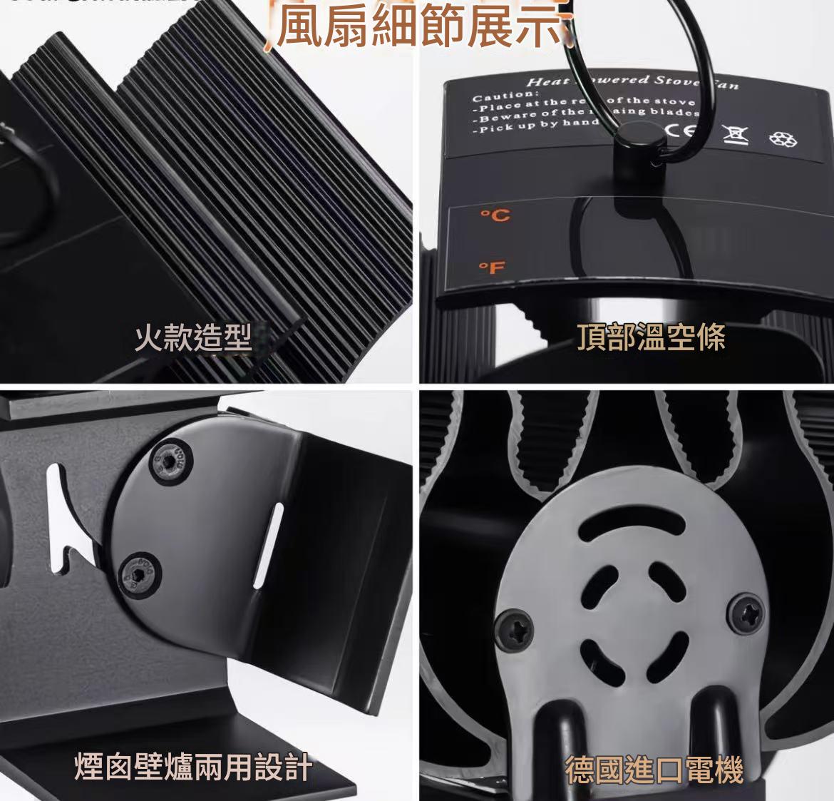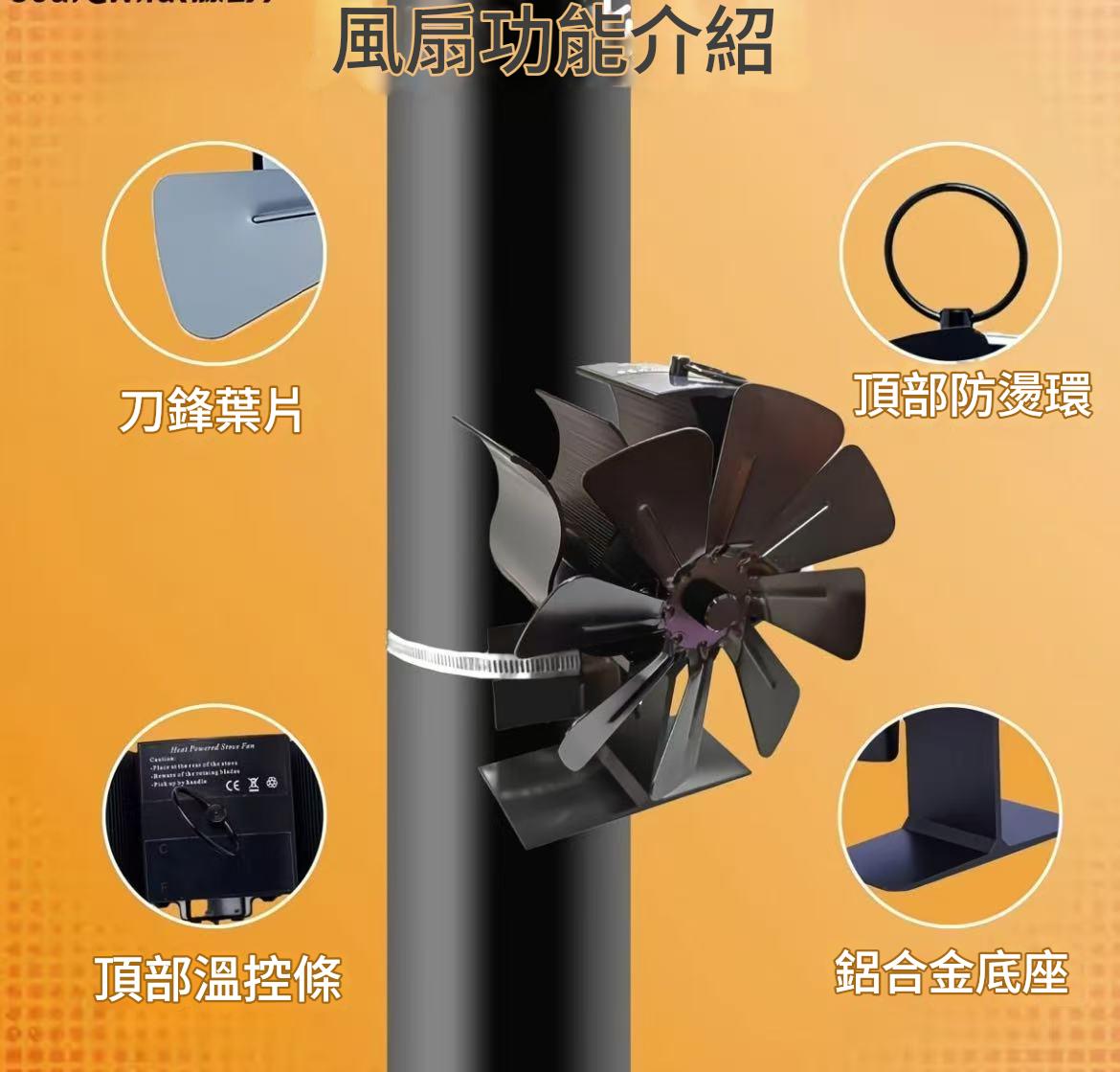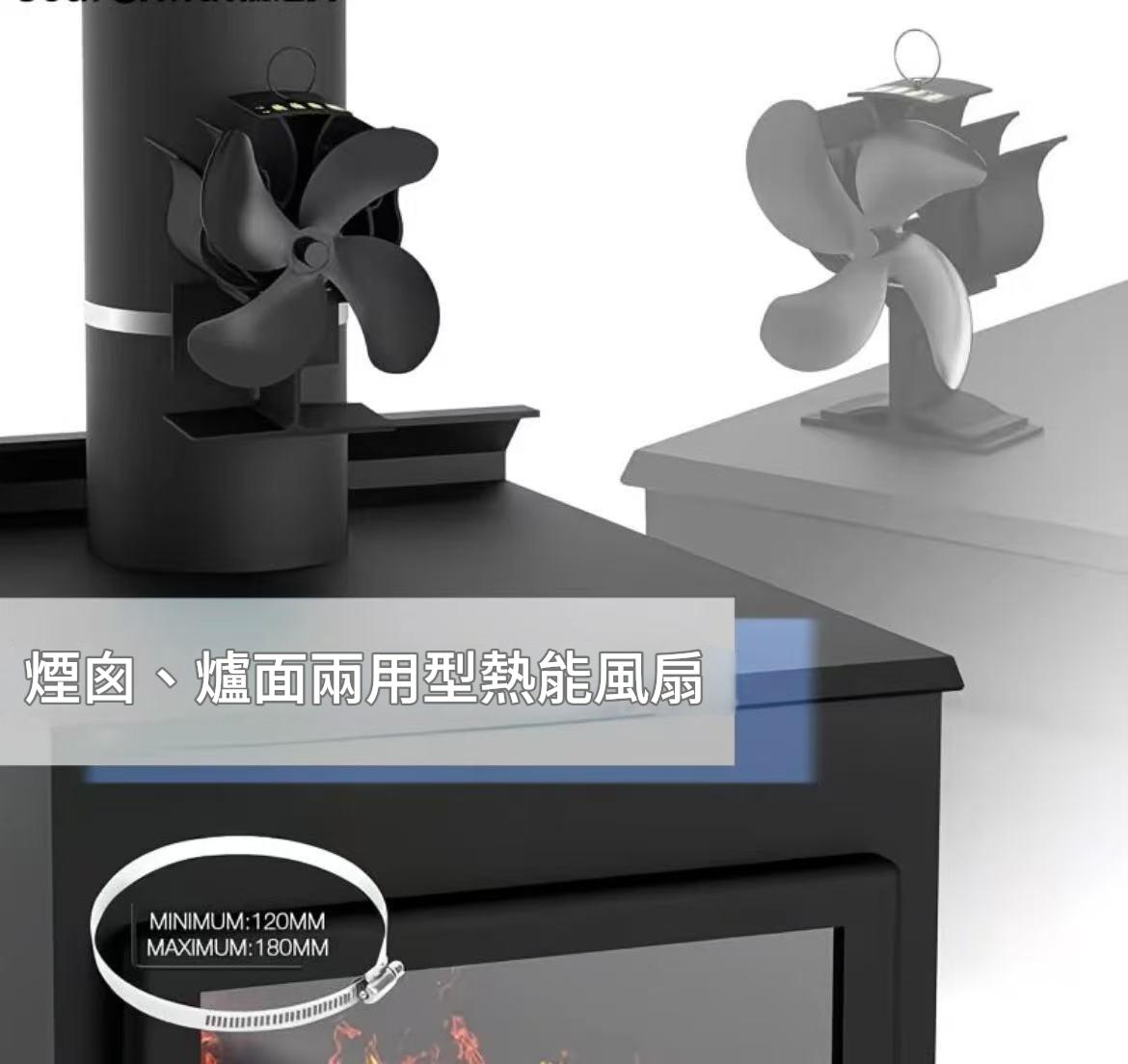 熱動力壁爐風扇煙囪壁爐兩用型熱動力熱能風扇冰釣露營暖氣帶抱箍