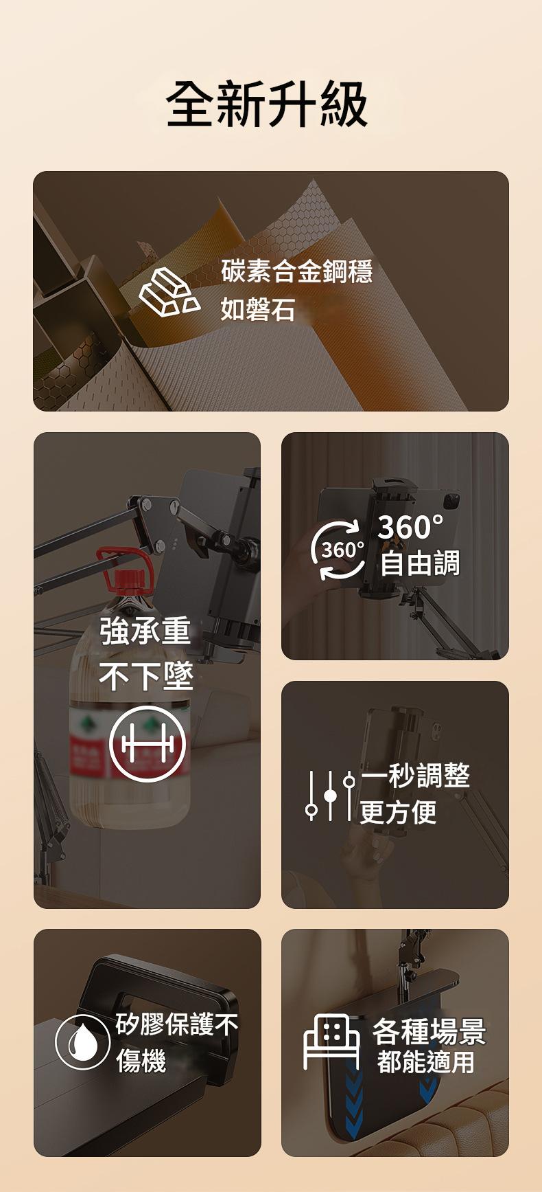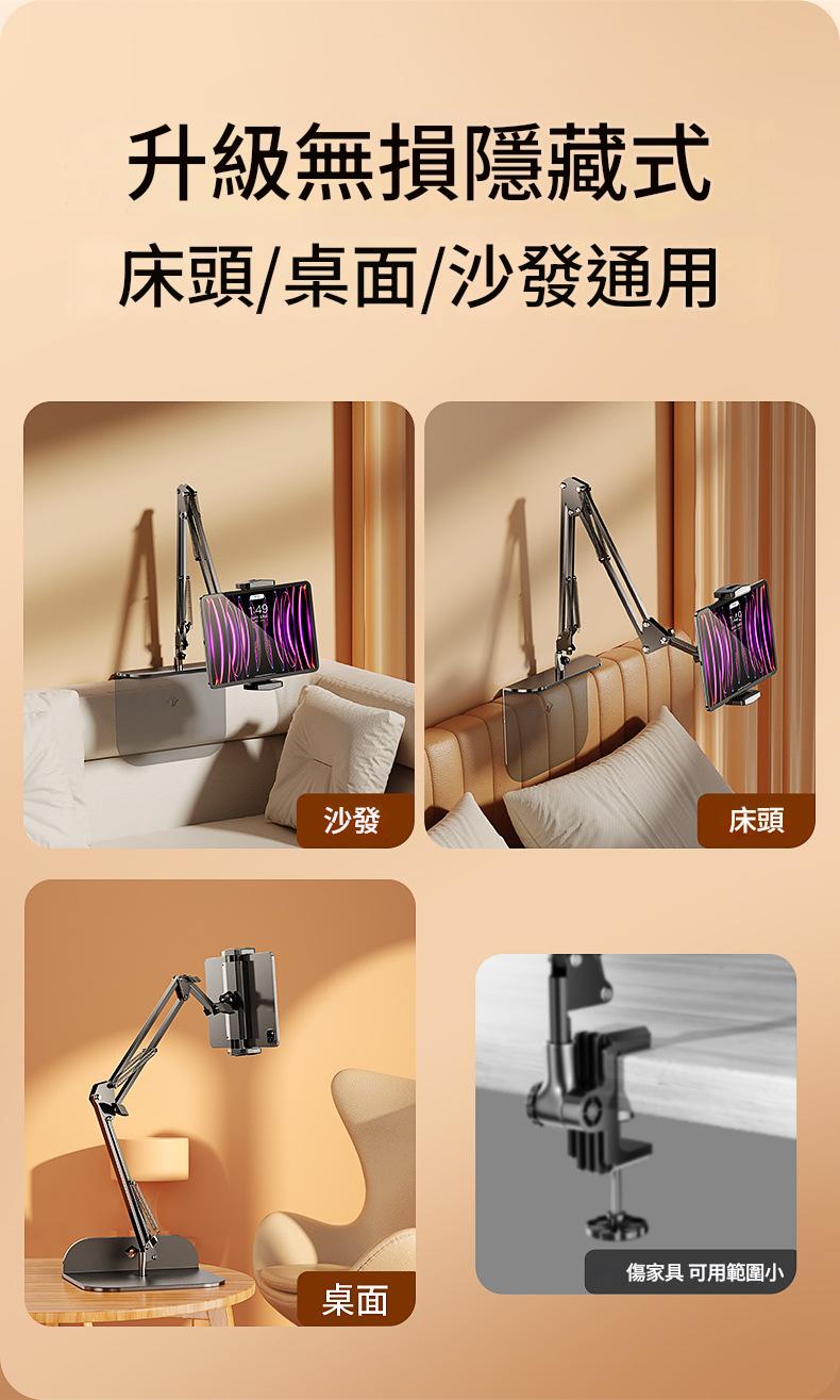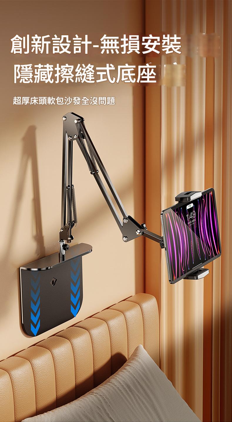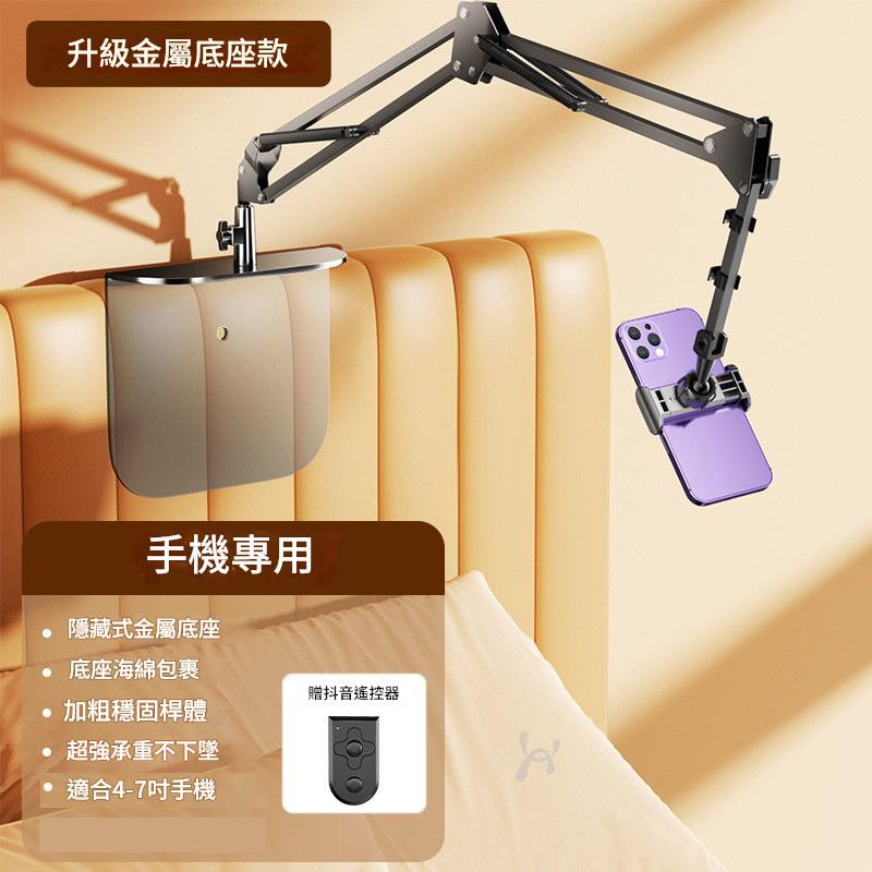 隱藏式床頭懶人支架免夾手機平板電腦懸臂俯拍支架刷抖音刷劇支架
